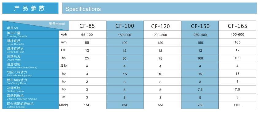 此機(jī)臺(tái)用于PVC,EVA,TPR等塑膠原料的生產(chǎn),包括主機(jī),雙腕入料,模頭切粒等系統(tǒng)將密煉機(jī)攪拌好的原料經(jīng)雙腕擠入造粒機(jī)內(nèi)經(jīng)螺桿擠出后切成粒子,此機(jī)臺(tái)操作簡單